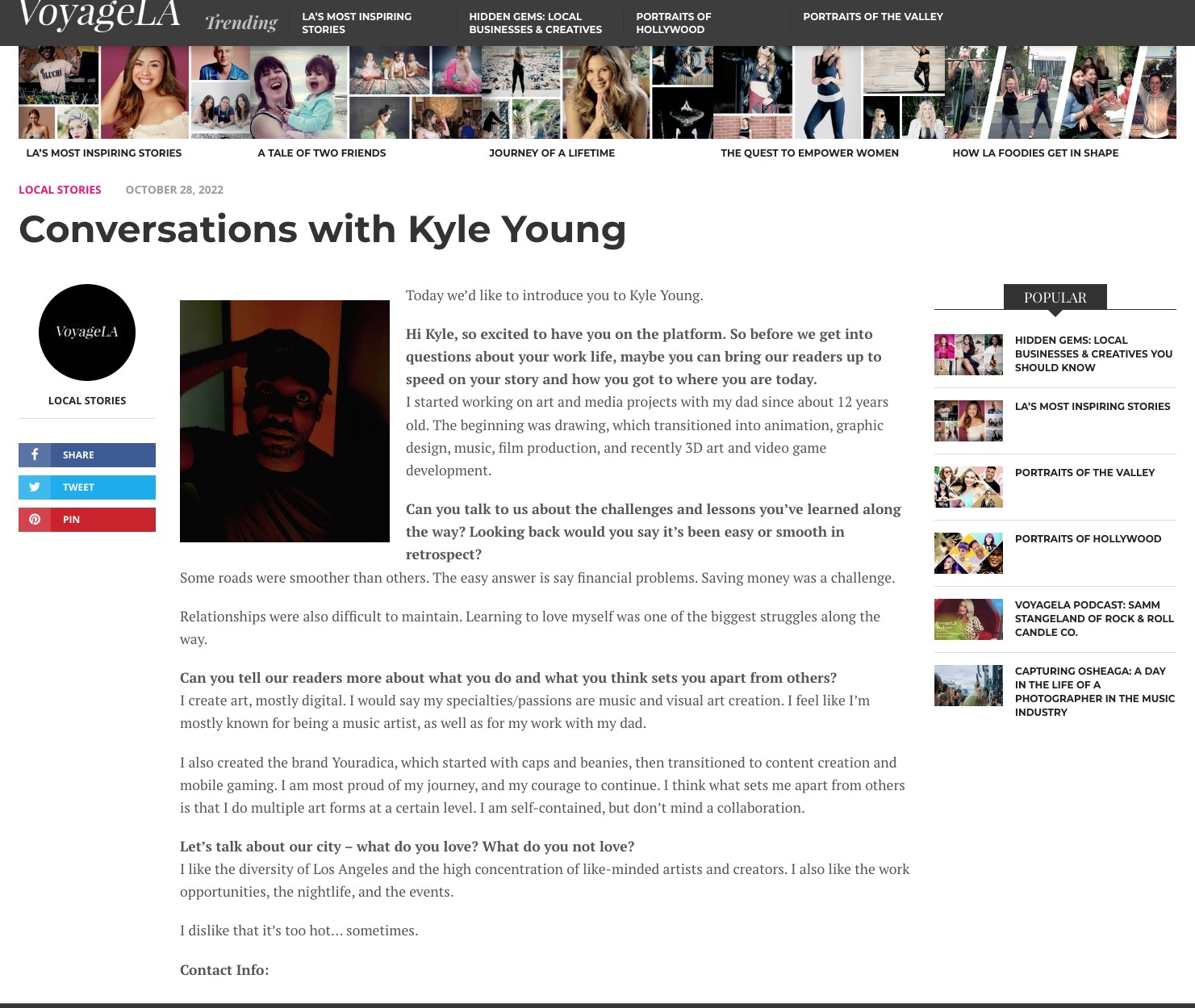 When it came time for college, I didn’t realize that you could go to school for music production. I chose film school because it was the closest thing to music that I saw being possible. It also gave me a reason to move to Los Angeles.Currently, I live in LA as an artist. Over the years, I have produced many musical pieces and other media products. I have a studio space in the valley that I use to pursue my dream. Also under the brand is a hat company I created using the brand “Youradica”. Youradica is short for “Young Radical in California.
